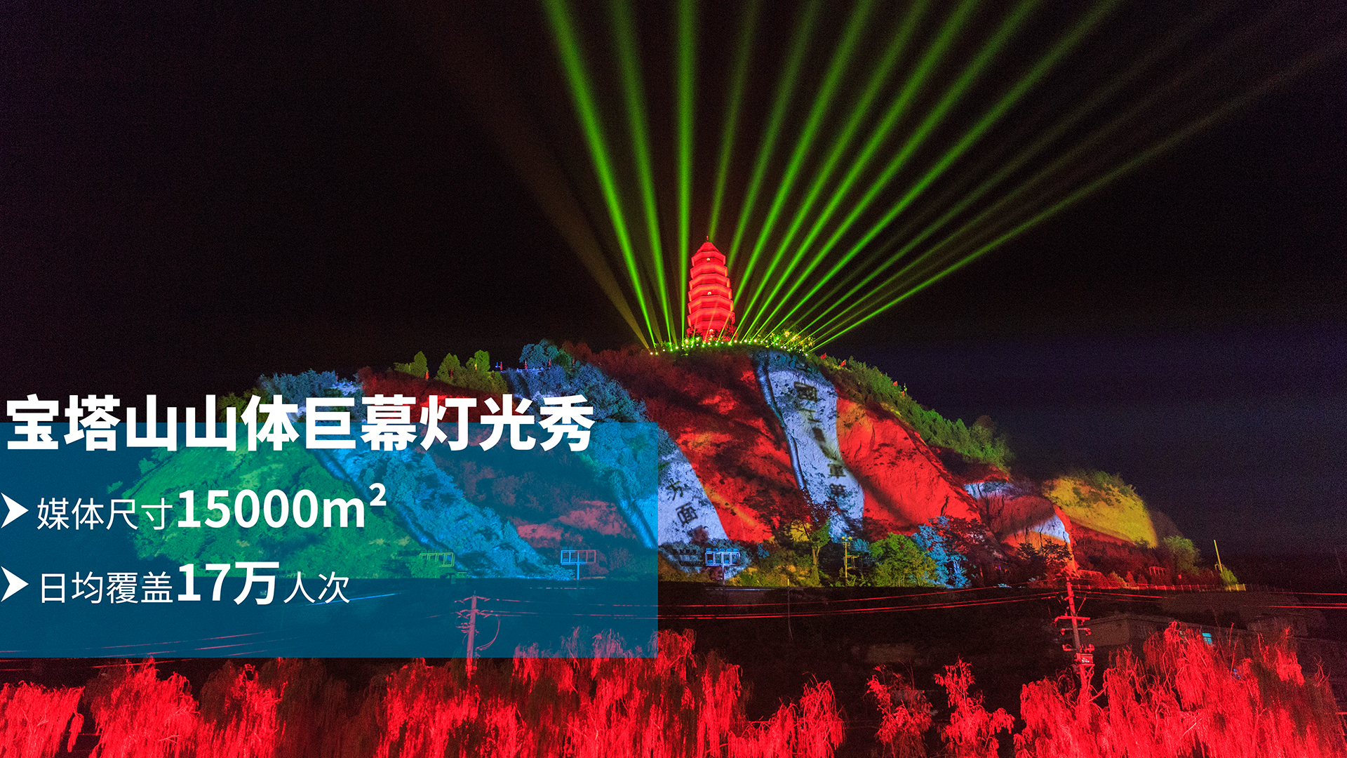 我們正在對公司運維的近百個燈光運維項目進行商業(yè)化廣告開發(fā),目前已有豐富的廣告資源,比如北京中關(guān)村8樓聯(lián)動燈光秀、陜西延安寶塔山山體巨幕、云南大理洱海沿線128公里燈光秀、浙江溫州甌江沿岸燈光秀。